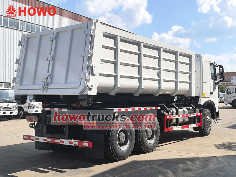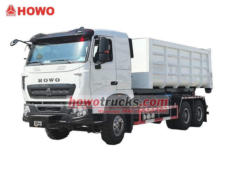 HOWO 20 tonluk kancalı yükleyici kamyon, ayrıca HOWO 6x4 kancalı kollu çöp kamyonu, HOWO 10 tekerlekli roro kancalı kaldırma kamyonu, HOWO kancalı kaldırma kamyonu, HOWO 440hp kancalı çöp kamyonu vb. isimlerle de anılmaktadır. Araç, güçlü MC11.44-50 dizel motor ve HW19710 şanzıman ile donatılmış, HOWO 6x4 ağır hizmet şasisi üzerine modifiye edilmiştir. Güçlü ve sorunsuz vites geçişi, mükemmel sürüş performansı ve çalışma istikrarı sağlar. Şehir içi yollar, yerleşim alanları, fabrikalar ve şantiyeler gibi çeşitli çalışma ortamlarında yaygın olarak kullanılmaktadır.