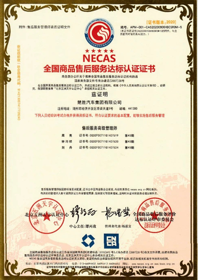 NECAS After Sale Service Guarantee