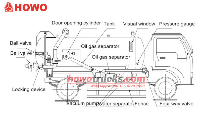 Vakum pompası negatif basınç oluşturarak atık suyu, çamuru ve diğer kirleticileri bir emme hortumu aracılığıyla kapalı bir atık su tankına çeker. Tank, atık suyun geri akışını önlemek için bir taşma önleme cihazıyla donatılmıştır. drenaj temizleme tankeri gövde kiti Verimli ve güvenli çalışma sağlamak için seviye göstergesi ve basınç göstergesi ile donatılmıştır.