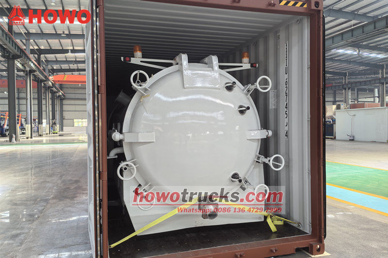 ●Tank atıkla dolduğunda, vakum pompasının yönü değiştirilerek veya hidrolik sistem kullanılarak tank eğilerek pozitif basınç oluşturulur; bu sayede atık, boşaltma ağzından hızla dışarı atılarak boşaltma işlemi tamamlanır.