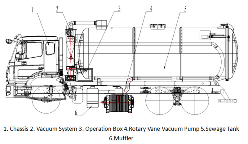 ♦ Araç, hidrolik kaldırma ve otomatik boşaltma sistemi, otomatik atık su tahliye vanası ve gözlem penceresi ile donatılmıştır. Kullanımı basit ve güvenlidir, emme ve boşaltma işlemlerinin hızlı bir şekilde tamamlanmasını sağlar.