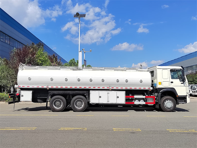 HOWO yakıt tankeri, 18.000 litrelik büyük kapasiteli karbon çelik deposu, 60 m³/saat yüksek akışlı yakıt pompası ve 4 inçlik tahliye hortumlarıyla donatılmıştır. Bu sayede tek seferde önemli miktarda yakıt taşıma kapasitesi ve hızlı yükleme/boşaltma sağlanarak operasyonel verimlilik önemli ölçüde artırılır.