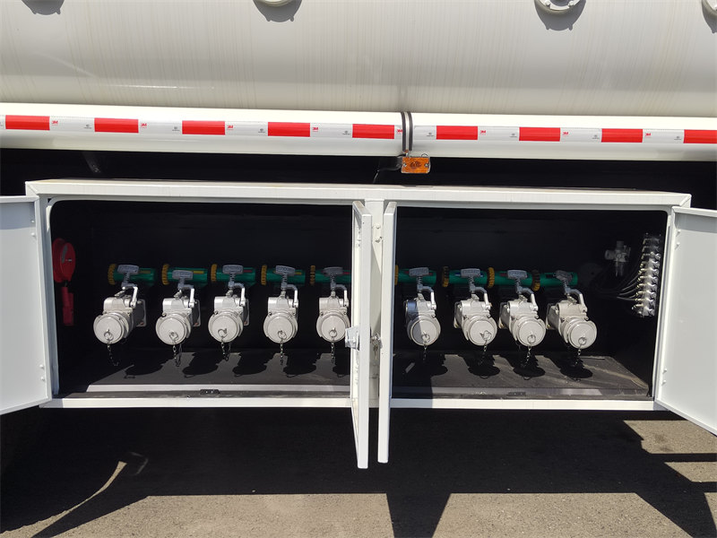 Avrupa standartlarında menhol kapakları (havalandırma vanaları ve taşma önleyici vanalarla birlikte), buhar geri kazanım sistemleri ve yangına dayanıklı alüminyum alaşımlı vanalarla donatılmıştır. 6 mm takviyeli karbon çelik tank, sızıntıları ve patlama risklerini etkili bir şekilde önlemek için çoklu güvenlik önlemleri sağlar ve tehlikeli madde taşıma standartlarına uygundur.