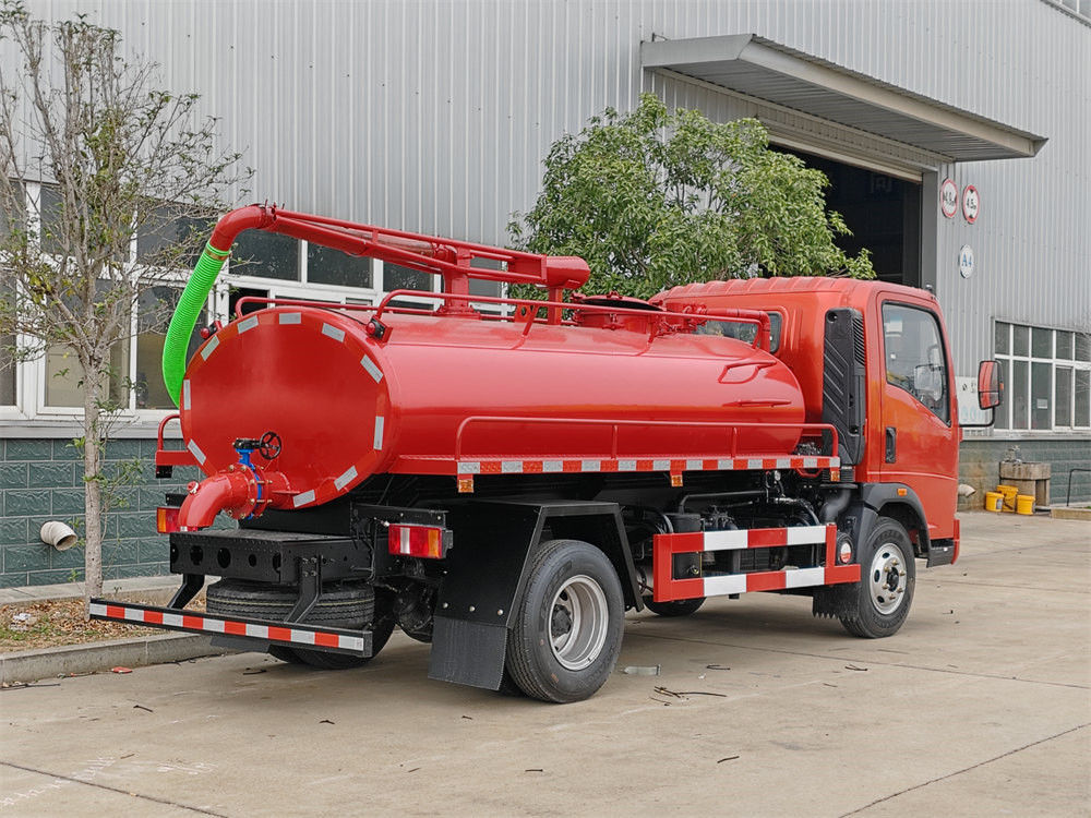 HOWO 4x4 RHD 4 metreküplük septik tank emme kamyonu, HOWO Hanjiang 1880 tek sıralı kabin, 4x4 dört tekerlekten çekiş, sağdan direksiyon, 3360 mm dingil mesafesi, YN4102QBZL 116 beygir gücünde motor, WLY6TS40 6 vitesli şanzıman ile donatılmıştır. Üst gövde, 4 metreküplük karbon çelik malzemeden yapılmış, korozyon ve paslanmaya karşı işlem görmüş bir septik tanktır. Yifeng SK-6 su halkalı vakum pompası ile donatılmış olup, maksimum pompalama hızı: 6 metreküp/dakika, devir: 970 rpm'dir. Üst kısımda 6 metrelik septik tank emme kolu, septik tank gözlem penceresi, taşma vanası, basınç göstergesi, egzoz vanası vb. ile donatılmıştır.