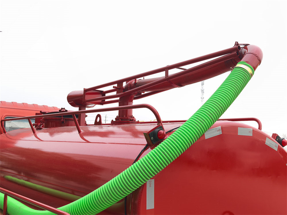 • Tank: 4 metreküp kapasiteli karbon çelik tank, ≥ 4 mm kalınlığında, uzun kullanım ömrü için korozyon ve paslanmaya karşı dayanıklı bir kaplama ile işlenmiştir. Üst kısmına 6 metrelik geri çekilebilir bir emme kolu monte edilmiştir, bu da çok açılı çalışma imkanı sağlar. Arkasına bir tahliye vanası takılmıştır, bu da yerçekimi veya basınçlı hava yardımıyla tahliyeye olanak tanır.