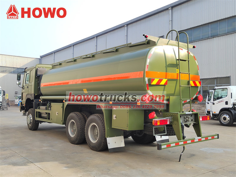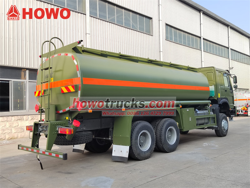 O HOWO 6×6 yakıt tankeri kamyonu 18.000 litrelik tank kapasitesine sahip olan araç, kullanım ömrünü uzatmak için içten korozyon önleyici kaplamalı 4 mm kalınlığında karbon çelikten üretilmiştir. Tank, operasyonel esnekliği artırmak için farklı yakıt türlerinin eş zamanlı taşınmasına olanak tanıyan iki bağımsız bölmeye ayrılmıştır. Yüksek kapasiteli 60 m³/saat yakıt pompası ve 60 L/dakika Censtar yakıt dağıtım ünitesi ile birlikte 15 metre uzunluğunda bir hortum makarası ile hızlı yakıt ikmal işlemlerine olanak tanır. Üstün arazi performansı ve Euro III emisyon standardı ile bu araç, özellikle petrol sahaları ve maden alanları gibi zorlu ortamlarda yakıt dağıtımı için Afrikalı müşteriler tarafından oldukça tercih edilmektedir.
