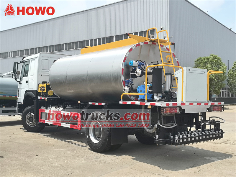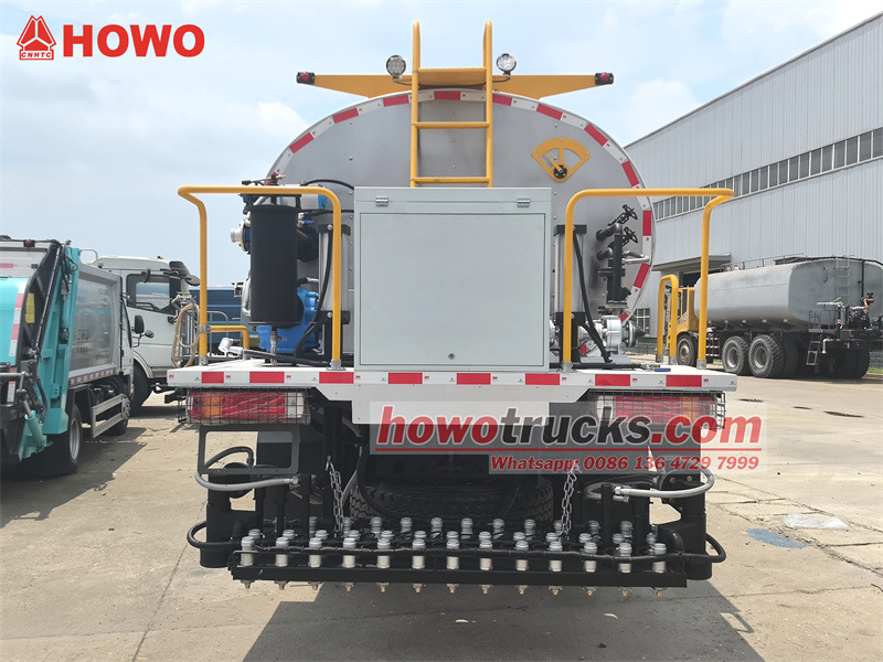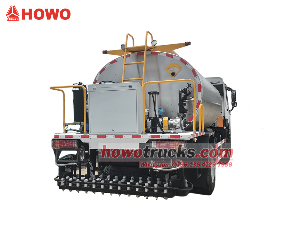 HOWO 4x2 8 metreküp kapasiteli asfalt dağıtım aracı, 4600 mm dingil mesafesine sahip, modifiye edilmiş bir HOWO HW76 kabin şasisidir. WP10.300E22 motor ve HW19710 şanzıman ile donatılmıştır. Üst kısımda, akıllı RCB38/0.6-80F asfalt izolasyon pompası, arkada 36 asfalt nozulu, 6 m püskürtme genişliği, 0,2-3 kg/m² püskürtme hacmi ve ithal dizel brülör (kalorifik değer: 10×10) ile donatılmış 8 metreküp kapasiteli bir asfalt tankı bulunmaktadır.⁴kcal/saat), otomatik termal yağ ısıtma, kabinde akıllı bilgisayar kontrolü ve yardımcı jeneratör seti.
