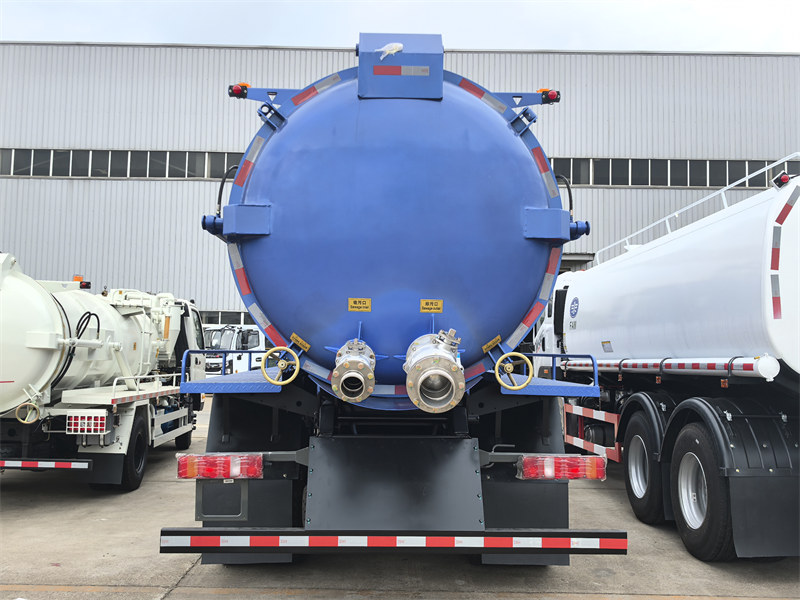 Ön tarafta, ünlü bir markanın hidrolik silindiriyle donatılmış vakumlu tanker kiti bulunmaktadır; bu silindir güçlüdür ve atık suyu boşaltmak için tanker gövdesini yukarı kaldırır.