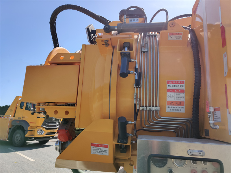 1. Vakum Emme Sistemi: Bir Jurop PVT400 vakum pompası negatif basınç üretir ve bu basınç daha sonra bir emme kolu vasıtasıyla 6,7 metreküp hacimli karbon çelik bir tanka emilir. Tankın üst kısmına bir taşma vanası takılmıştır; bu vana otomatik olarak taşma alarmı verir ve geri akışı önlemek için emme portunu kapatır. Emme kolu, çeşitli çalışma pozisyonlarına uyum sağlamak için hidrolik olarak kaldırılabilir, geri çekilebilir ve döndürülebilir.