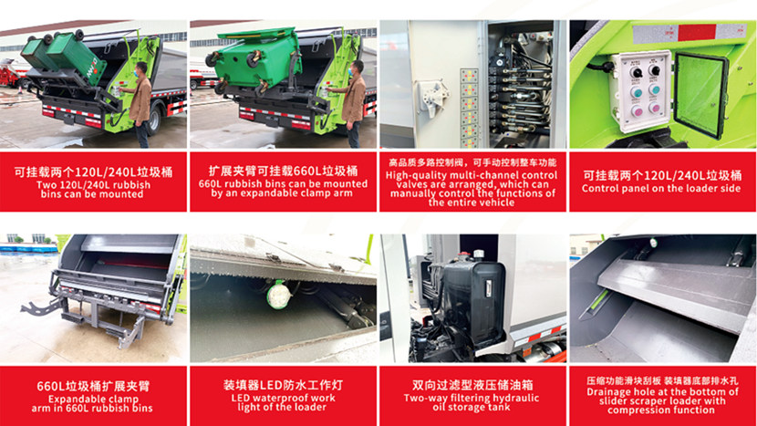 ●Sıkıştırma sistemi, atıkların kolayca dökülmesini önleyerek ikincil kirliliği etkili bir şekilde engeller.