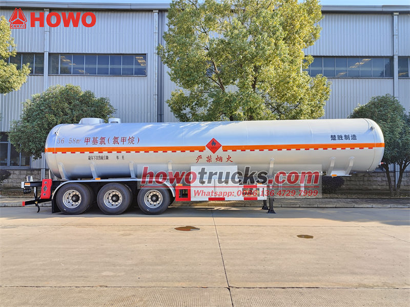 CS9402GYQA kimyasal sıvı tanker römorku, 40 metreküp kapasiteli, metil klorür taşımacılığı için özel olarak tasarlanmış üç dingilli bir tankerdir. Tank gövdesi, 1,2 MPa'ya kadar çalışma basıncına sahip yüksek mukavemetli Q420R çelikten yapılmıştır. Acil durum kapatma vanası, EBS sistemi, havalı süspansiyon ve disk frenlerle donatılmış olup, yüksek riskli kimyasalların güvenli taşınmasını sağlar. Araç, sağlam bir yapıya sahiptir, yüksek korozyon direnci ve işletme özelliklerine uygundur ve zorlu kimyasal taşıma senaryoları için idealdir.